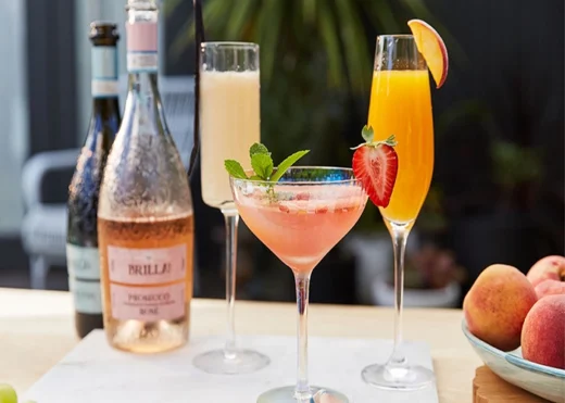 Bellini um coquetel clássico de cor rosada e sabor refrescante